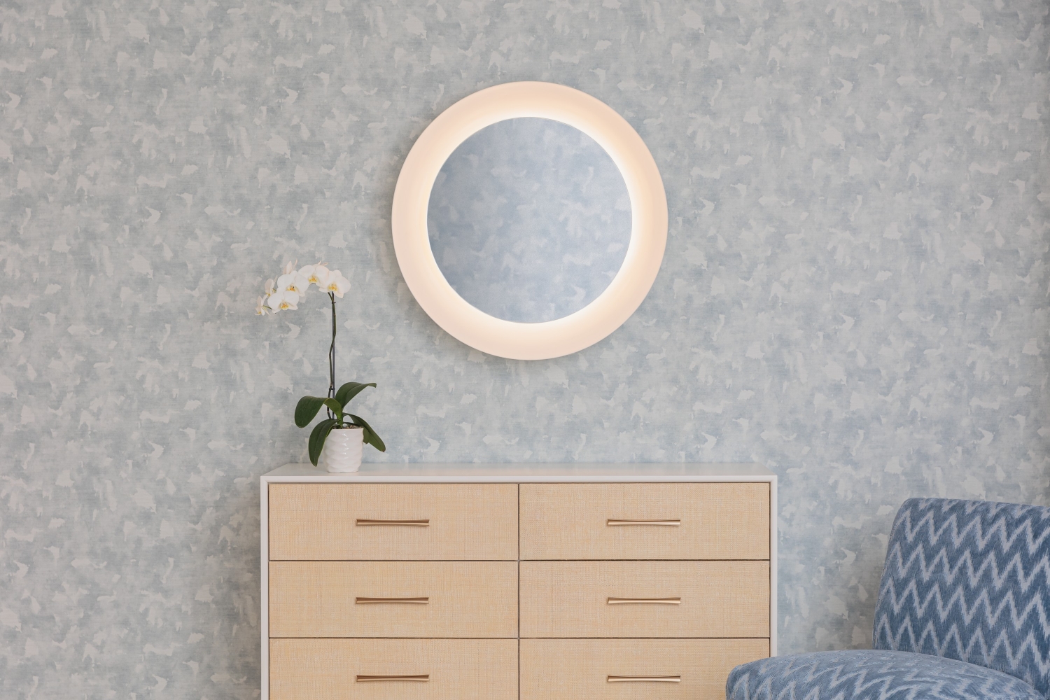 4262 Andamento Skyline, V103-04 Hikaru Powder Blue, 4121-01 Akari White Light Installation Image